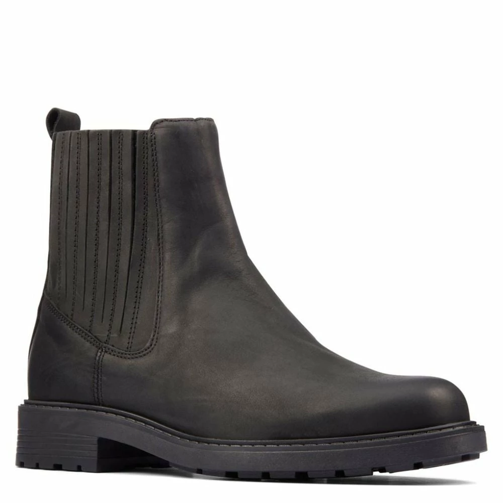 A cleated sole, chunky elevated heel and ruched stretchy panels give Chelsea boot-inspired Orinoco 2 Mid a statement look. A strong silhouette in tough black leather, it’s sure to add just the right amount of edge to autumn/winter outfits.
