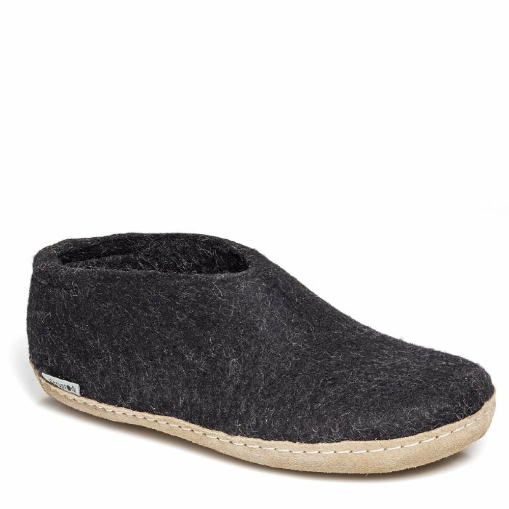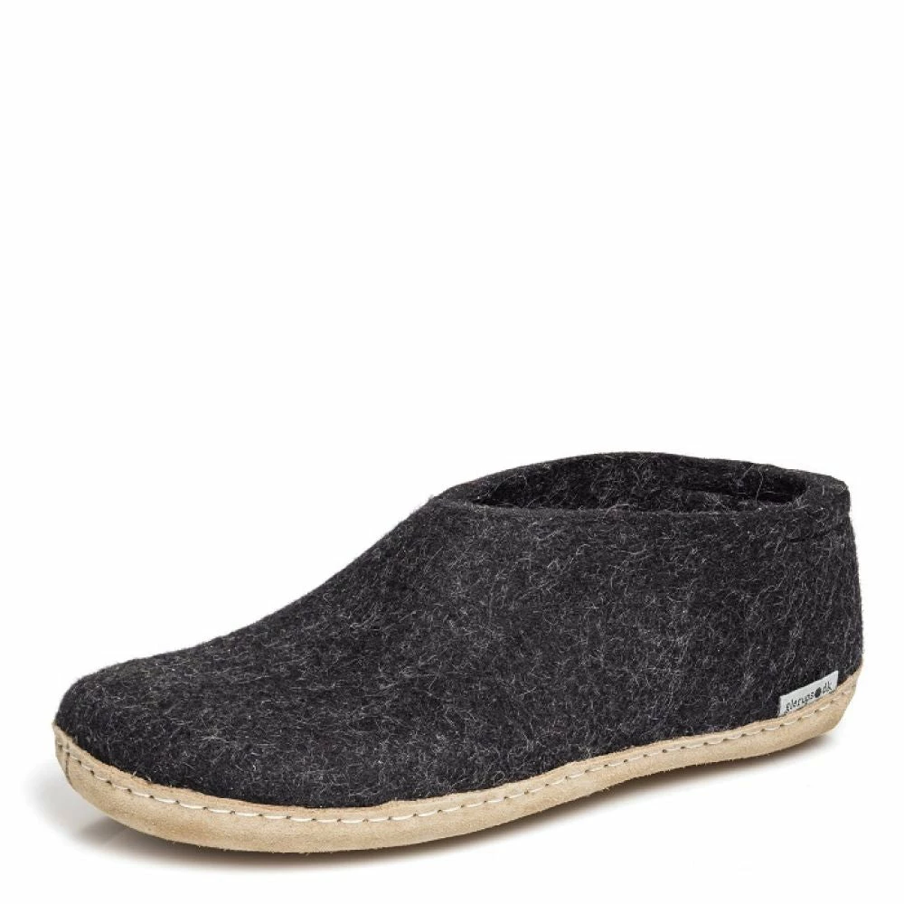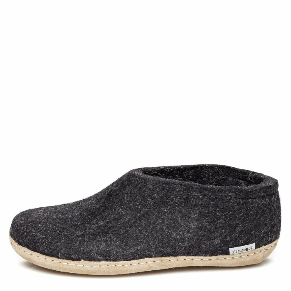 The Glerups Shoe Leather Sole in Charcoal is the perfect indoor footwear for barefoot comfort around the house or chalet, where cold floors are a fact of Canadian life. Get more warmth and the comfort of on-the-foot 100% pure wool shoe.