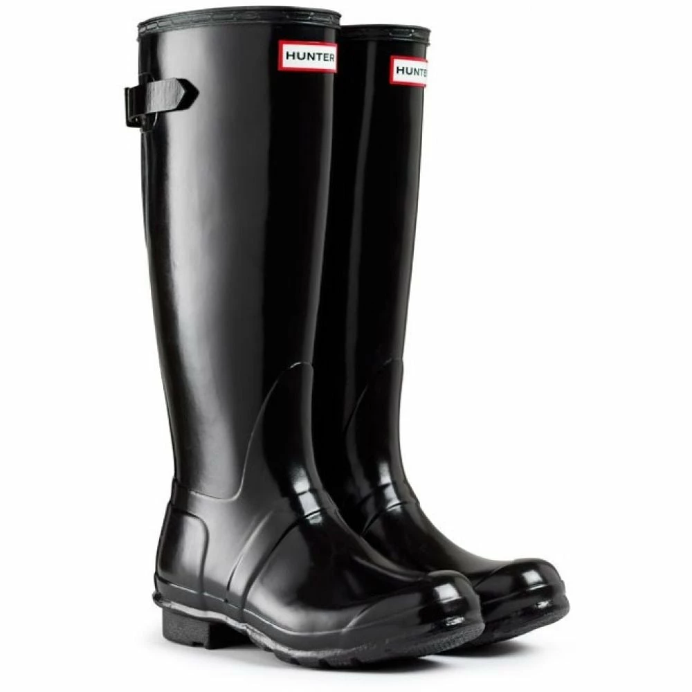 Hunter Women’s Original Back Adjustable Gloss Rain Boots In Black