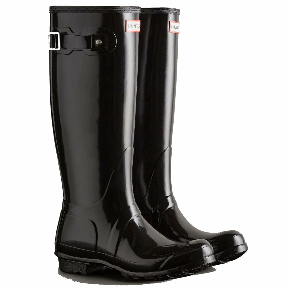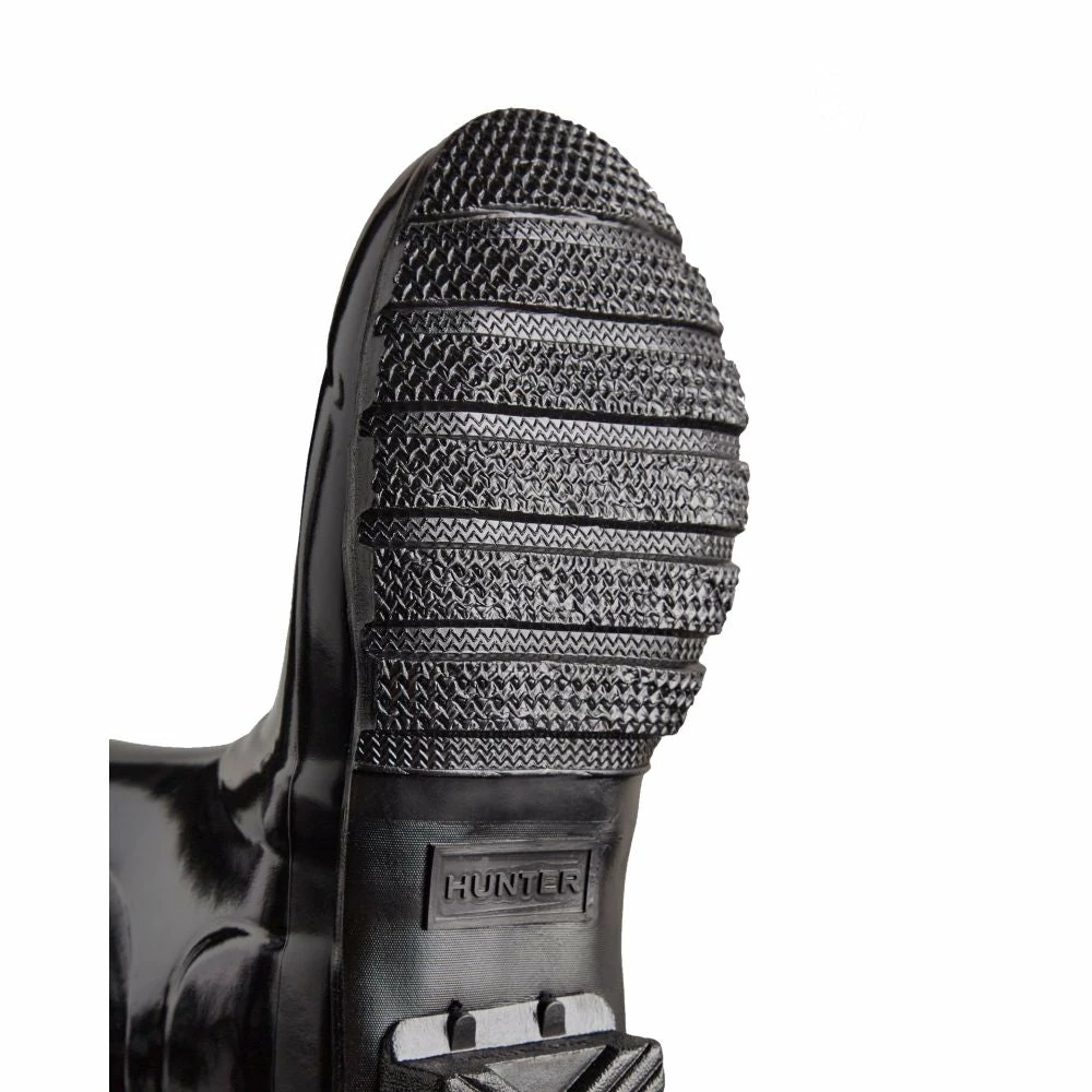 Perfect for wet weather conditions, this Hunter Original Tall Rain Boot has been at the heart of the Hunter Original brand since its introduction in 1956. Formed of natural rubber, each pair is made from 28 hand-cut parts and assembled over three days on an aluminium last bespoke to Hunter, before being vulcanized for superior protection. Featuring the Hunter Original tread pattern, and a comfortable polyester lining, this classic glossy black waterproof boot is a rainy-day necessity.
